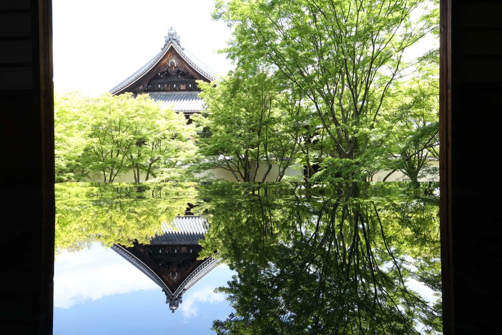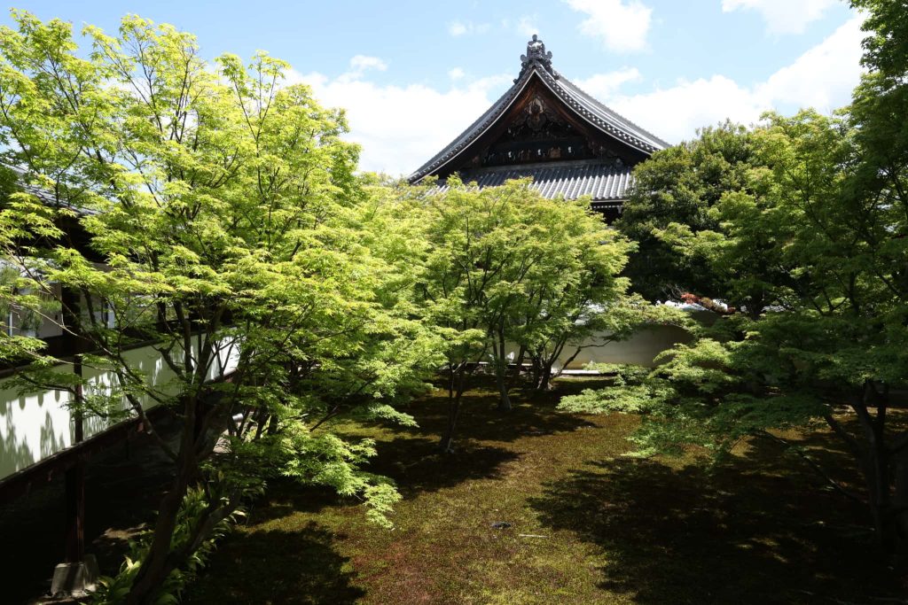 白壁、渡り廊下、本堂に囲まれた平らな地をなでるように流れる風を感じさせる。季節を感じさせる若葉と紅葉が美しいカエデを植えた極めてシンプルな法姿園、易経に当てはめると先に記事にした妙心寺 桂春院庭園と同じく「20风地观」観察、省察の道になる。織田信長は二十数回の上京の際、18回も妻、濃姫の弟が住持を務める妙覚寺を宿舎とし、本能寺の変では嫡男、織田信忠が宿舎とした。桂春院の前身の見性院は織田信忠の次男、織田秀則が本能寺の変から16年後の1598年に創建したもの。両方の庭は共に、民から仰ぎ観られた織田信長と信忠の姿を表現し、観卦の教えを語っている。それを書き出すことにした。